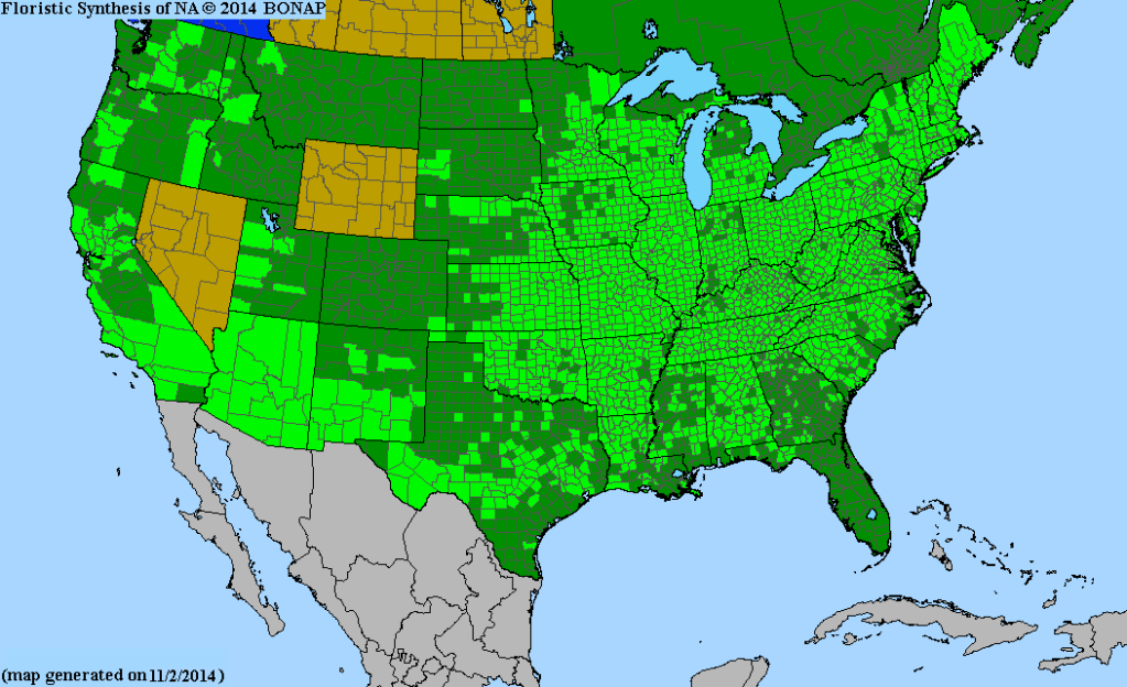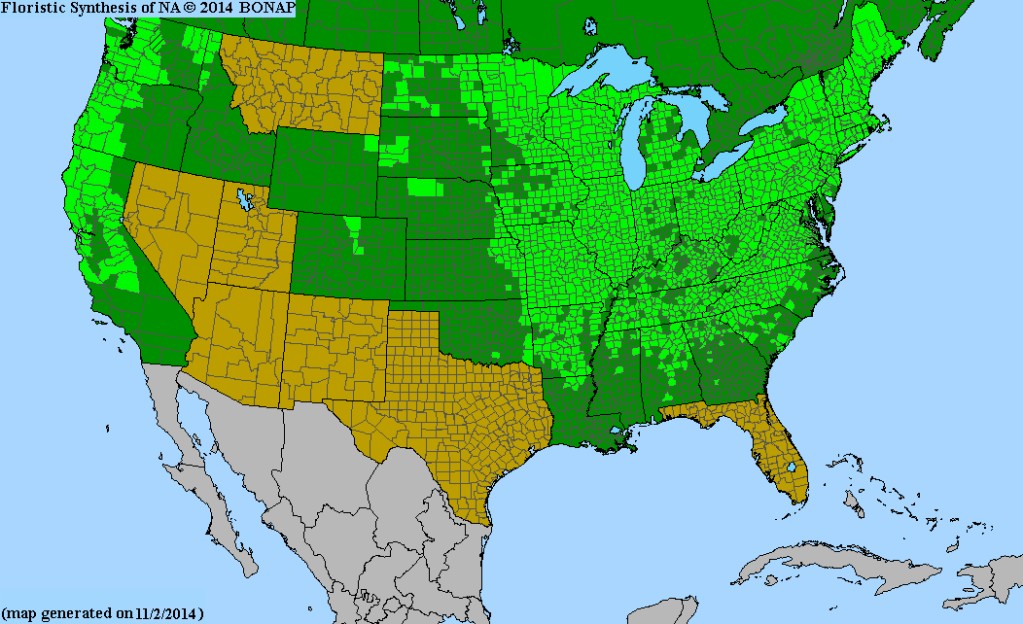The Black Walnut (Juglans nigra) has not been set back by canker at all. The tree is practically a weed in some areas – annoying people with the nuts and dark staining rinds covering the ground in fall. It’s typically seen in damp soils along riverbanks, but they also thrive in yards, valleys, and more moist woods.
