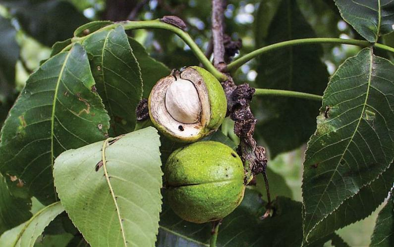 The shells of the Black Walnut are among the hardest in the world. A hand nutcracker simply will not work. Cracking is typically done with a hammer or specialized equipment. You can usually track down walnut trees in fall just by the sound of squirrels and chipmunks chewing through the thick nuts with their hard teeth – it sounds like metal coins being rubbed together – animals without those strong rodent teeth don’t stand a chance of prying one open (unlike chestnuts, hazelnuts, pecans, and acorns, which all are important food sources to numerous animals).
